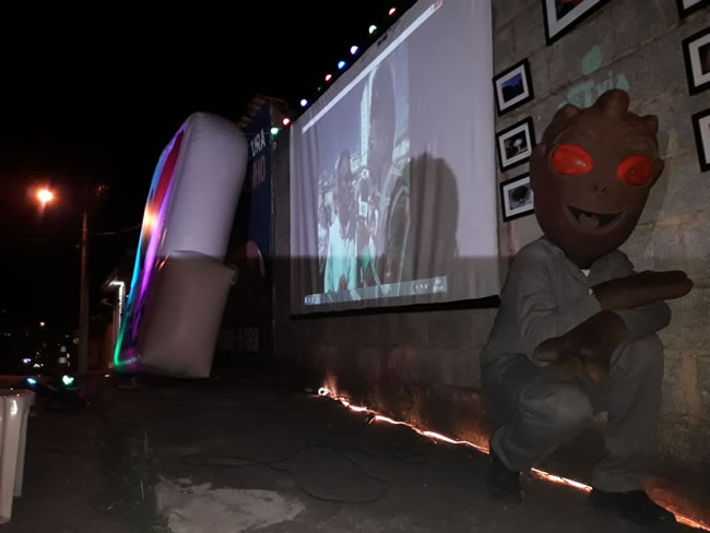 Já no bairro Jardim Andere, foi montado um telão para a exibição de reportagens de TV da época sobre o Caso, o trailer de um desenho animado com a participação do extraterrestre e a primeira exibição pública do filme sobre a Virada Varginha 2018. A ação contou ainda com a aparição do boneco do ET de Varginha que interagiu com o público presente.