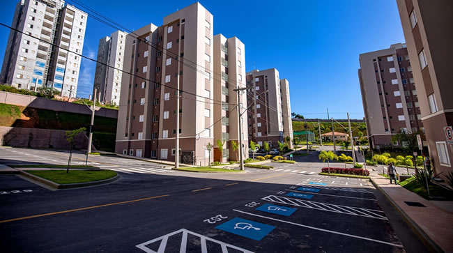 Serão construídos ao todo 10 blocos de 8 andares cada, com 320 apartamentos de médio alto padrão com: 2 quartos c/ suíte e elevador, além de área de lazer completa (playground, churrasqueira, piscinas, quadras esportivas, salão de festas), estacionamento, guarita c/ segurança 24h e muito mais.