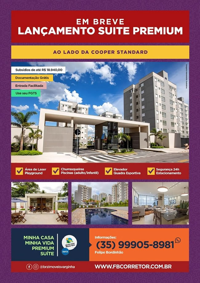 O novo lançamento da BRZ Empreendimentos em Varginha promete agitar o mercado imobiliário nos próximos dias. É o Minha Casa Minha Vida PREMIUM, com suíte e elevador ao lado da Cooper Standard.