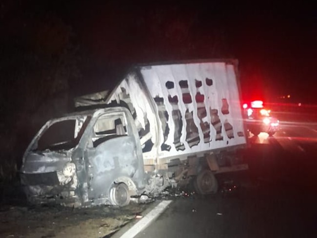 Segundo os bombeiros, o fogo teve início na parte do motor de um caminhão e se alastrou rapidamente, consumindo o veículo por completo. As chamas também se propagaram para a vegetação localizada às margens da rodovia, gerando um incêndio florestal e intensificando o risco na região.