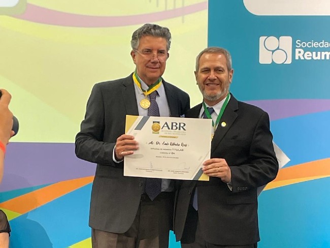 Dr. Ênio expressou a grande honra de receber a homenagem, destacando a relevância da Academia: “É uma honra muito grande receber essa homenagem, pois somos mais de quatro mil reumatologistas no Brasil e cinquenta cadeiras na Academia Brasileira de Reumatologia."