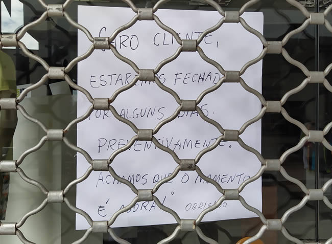 Uma loja de roupas masculinas que fica na Rua Presidente Antônio Carlos se antecipou e fechou as portas preventivamente. "Caro cliente, estaremos fechados por alguns dias preventivamente. Achamos que o momento é agora!”, dizia um aviso na porta.